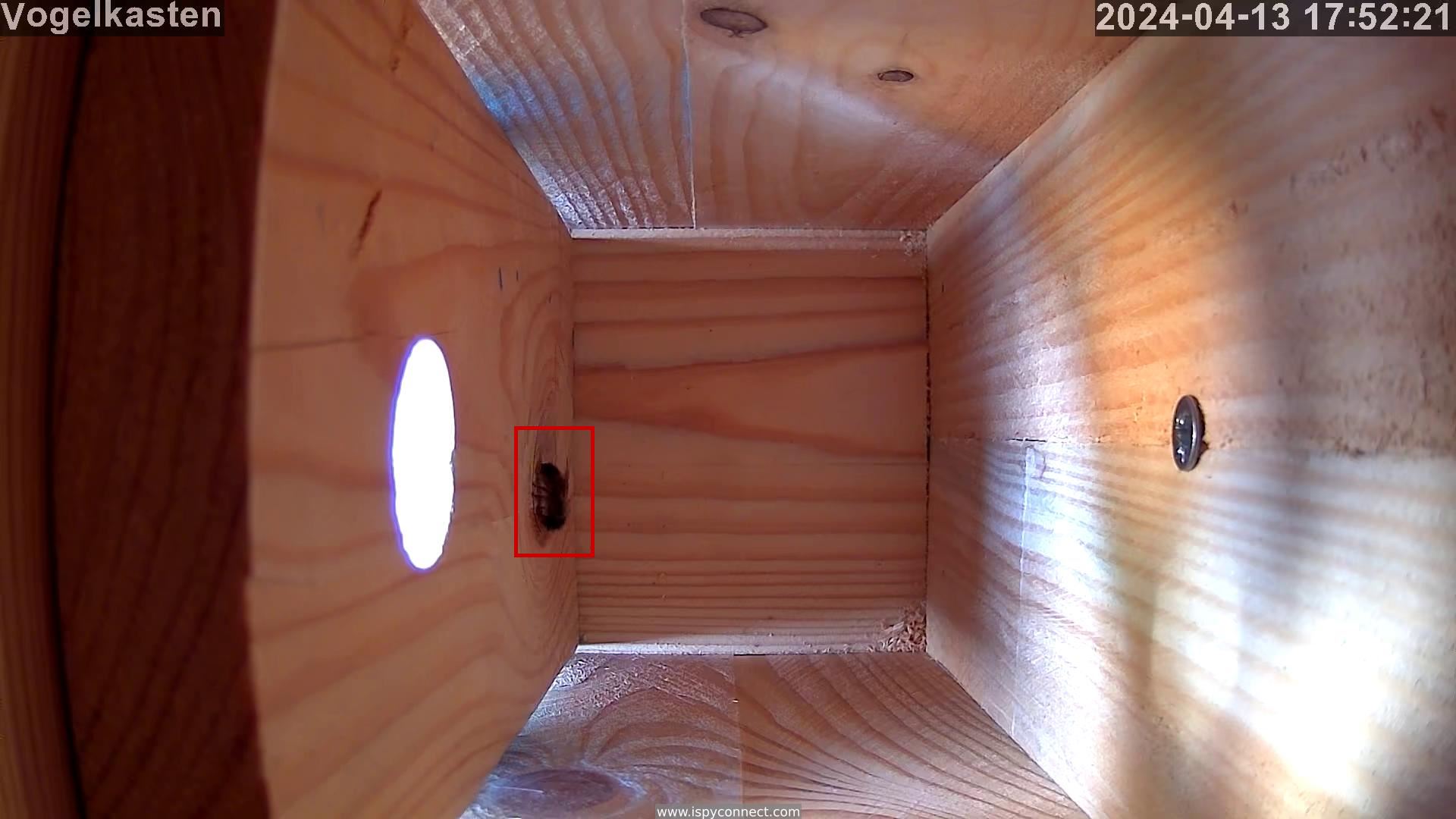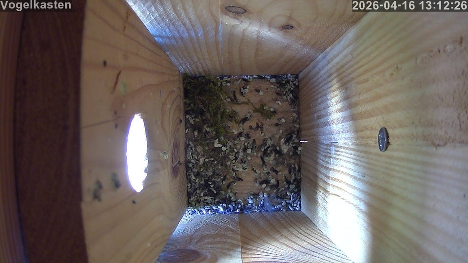 Der erste Vogel hat ein blick in den Nistkasten geworfen.